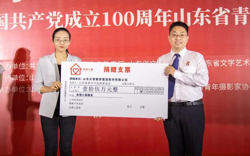 活動現場,大智教育集團向山東省青年發展基金會捐款15萬元,用于支持“希望小屋”建設。