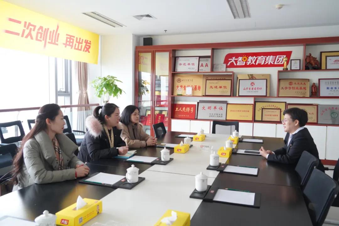 2月26日下午,北京同仁堂濟南分公司黨支部書記田蕾,北京同仁堂濟南分公司負責人周洪萍,中車山東公司財務(wù)部組織委員、工會主席胡曉明來大智總部交流學習黨建工作。大智教育集團黨委書記王現(xiàn)芹熱情接待。