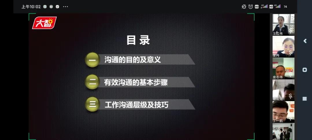 2月26日上午,大智教育集團(tuán)黨委書(shū)記王現(xiàn)芹為大智黨員們帶來(lái)“向陽(yáng)計(jì)劃”培訓(xùn)第二講精彩內(nèi)容分享——《管理就是溝通》。部分黨員現(xiàn)場(chǎng)參加培訓(xùn),其他各區(qū)域(公司)的黨員們通過(guò)視頻連線的方式參加培訓(xùn)。