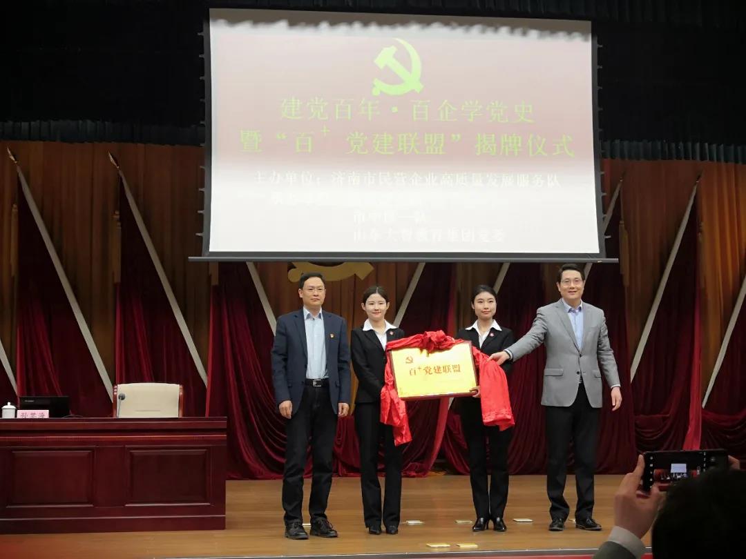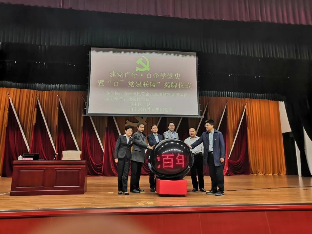 為切實加強和改進民營企業黨建工作,為民營企業發展壯大提供堅強的政治堡壘,3月23日上午,由濟南市民營企業高質量發展服務隊主辦,濟南市民營企業高質量發展服務隊槐蔭區二隊、濟南市民營企業高質量發展服務隊市中區一隊、山東大智教育集團黨委承辦的學黨史、悟思想、辦實事、開新局暨“百+黨建”聯盟揭牌儀式在槐蔭區政務中心舉行。