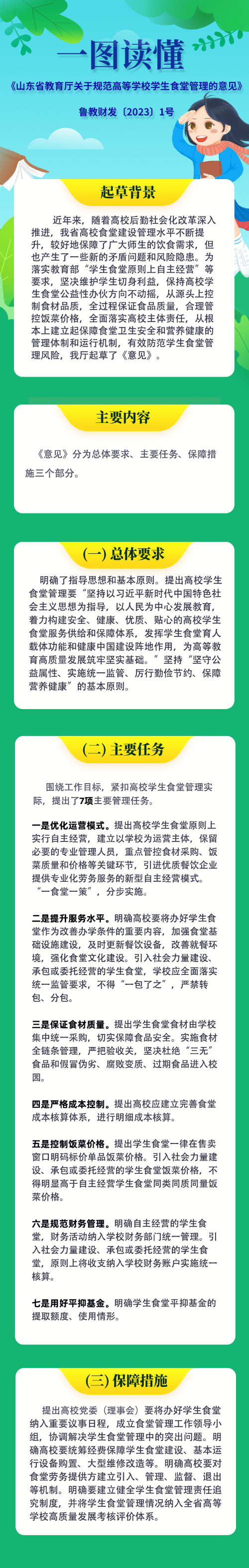 8月30日,《山東省教育廳關于規范高等學校學生食堂管理的意見》(魯教財發〔2023〕1號,以下簡稱《意見》)正式印發,現解讀如下。一、起草背...