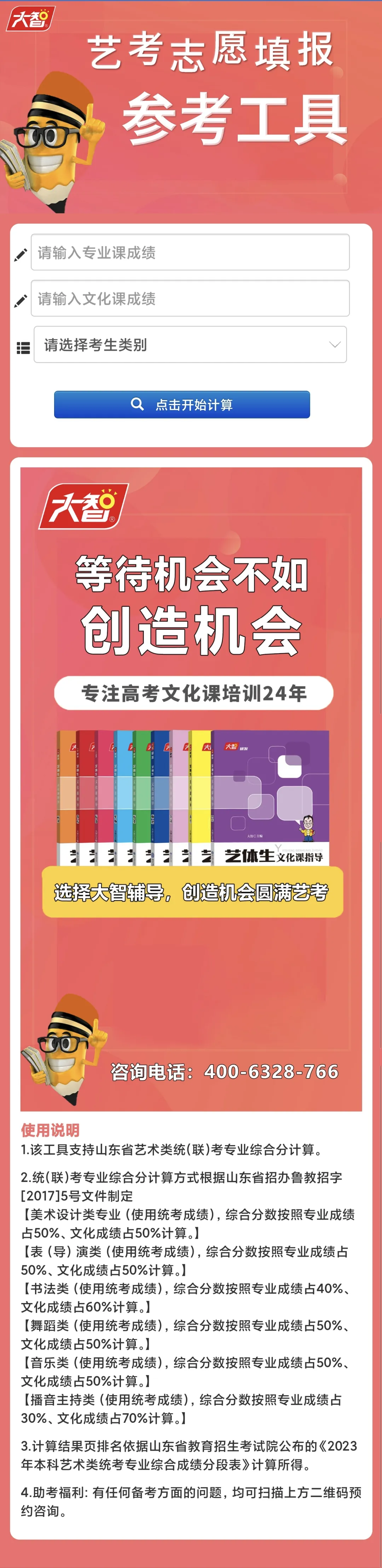 1.音樂類、舞蹈類、表(導)演類、美術與設計類、書法類:綜合分成績=高考總分×50%+省級統考成績×2.5×50%