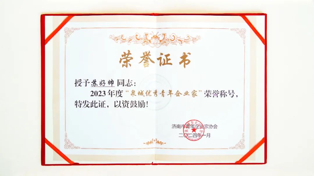 蘇好帥榮獲“泉城優秀青年企業家”稱號