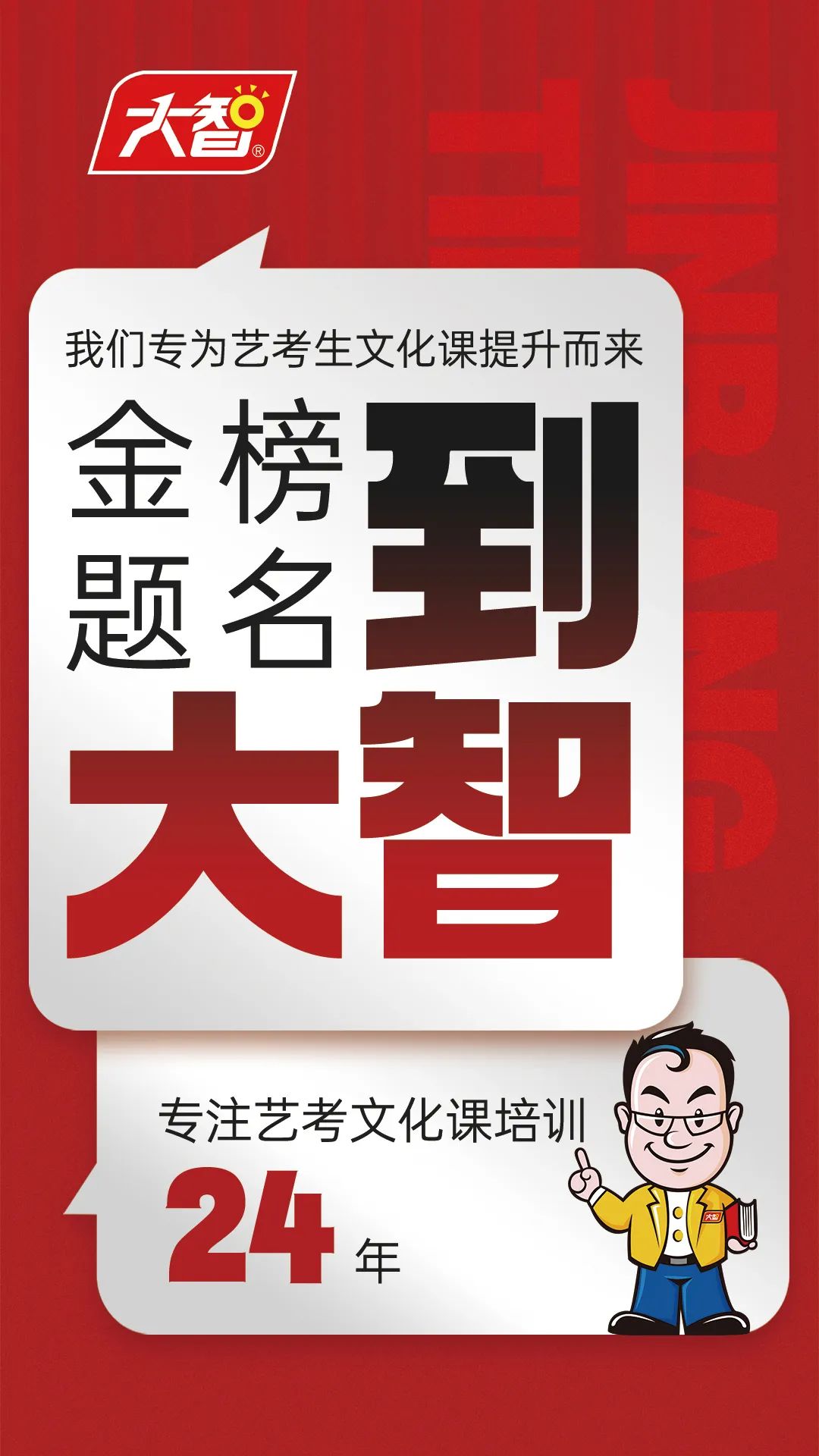 夢想啟航篇大智教育大智是運營高考文化課、藝體生文化課、升學規劃的專業性機構。大智始終以“為黨育人 為國育才”為己任,秉承“視學生為親人 視家...