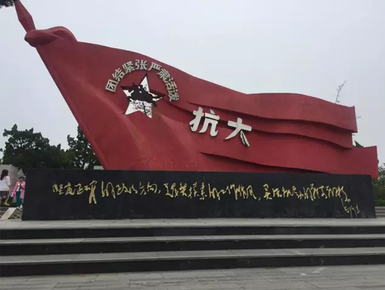 大青山勝利突圍紀念廣場上,大智黨員共同接受革命英雄主義光榮傳統教育。