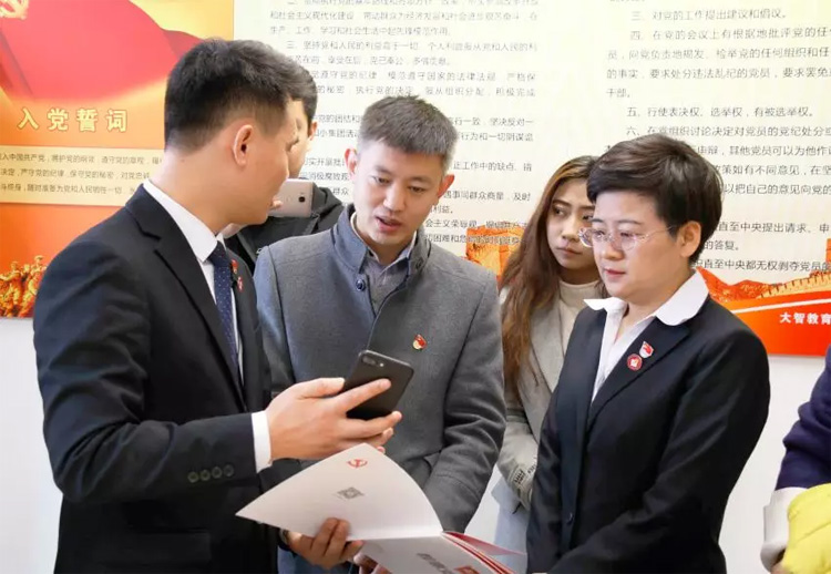 常廣成帶領大家參觀了黨建長廊,詳細介紹了大智圍繞“黨務支持業務,業務反哺黨務”的理念開展的黨建工作。