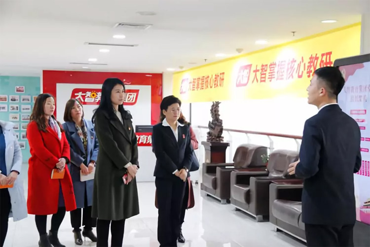 02月25日,山東九陽家電黨總支書記韓振華一行蒞臨大智交流黨建工作,大智控股集團黨委書記王現芹、黨委委員常廣成熱情接待。