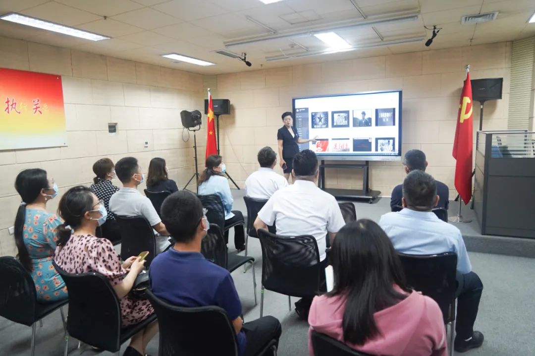 王現芹帶領大家參觀了黨建長廊,詳細介紹了大智組織架構、企業文化等相關情況,以及“智惠黨建一三九”黨建工作模式,黨建引領下的“一帶一促”群團建設理念和“智惠+”群團建設模式。