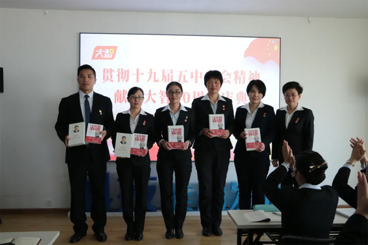 11月06日上午10:00,集團黨委組織開展《貫徹十九屆五中全會精神 獻禮大智20周年慶典》主題黨日。黨委書記王現芹出席,集團黨委5個直管支部的40余名黨員參加會議。