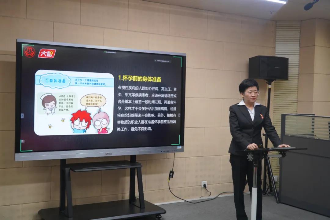 課堂上,大智教育集團黨委書記、婦聯(lián)主席王現(xiàn)芹從懷孕前的準備、時間計劃階段、孕前檢查項目三個方面進行了詳細講解,同時結合自身經驗及身邊案例為家人們答疑解惑。