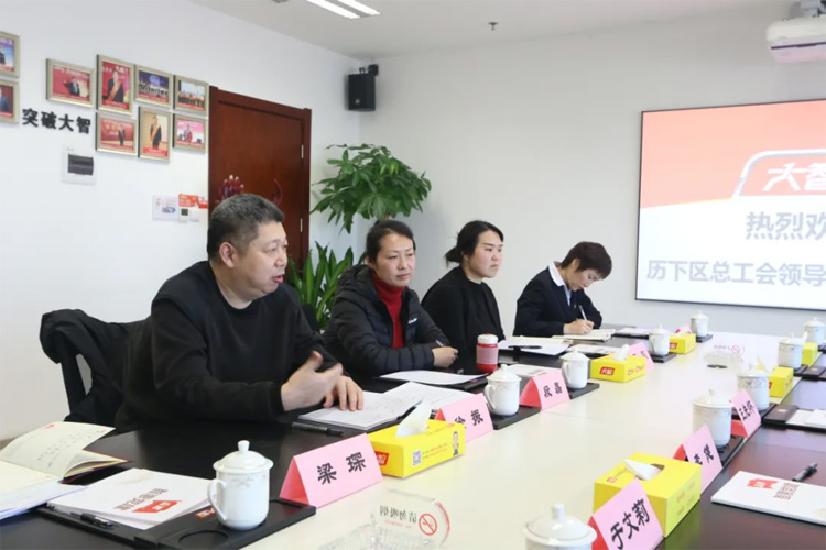 12月21日,濟南市歷下區(qū)總工會一行蒞臨大智控股集團指導(dǎo)工會建設(shè)并組織研討會。區(qū)總工會黨組書記、常務(wù)副主席李健 、三級調(diào)研員副主席王先懷,辦公室主任于文莉 ,泉城路街道副書記徐振,工會副主席王亮,解放路街道黨建辦副主任王琳,副主席梁琛等領(lǐng)導(dǎo)出席本次座談會。