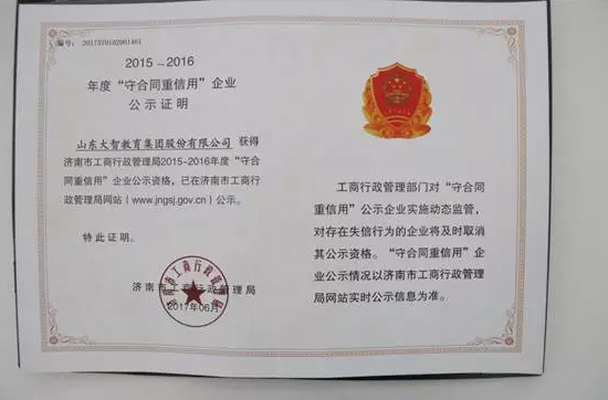 日前,山東省濟南市工商行政管理局公布2015~2016年度“守合同 重信用”名單, 大智憑借良好的口碑與信譽, 喜獲“守合同重信用” 企業這一榮譽。