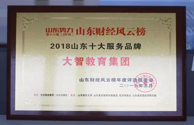 本次獎項(xiàng)評選歷經(jīng)公眾投票和專家評審多個環(huán)節(jié),大智控股集團(tuán)憑借良好的教學(xué)質(zhì)量和口碑在激烈競爭中脫穎而出。會上,大智被評為“山東十大服務(wù)品牌”。