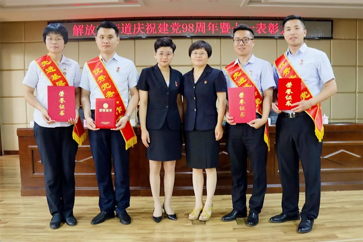 06月25日,濟南市歷下區解放路街道召開慶祝建黨98周年暨七一表彰大會,會上,大智控股集團小班項目黨支部、講師第二黨支部獲得“先進基層黨組織”榮譽,大智控股集團1對1項目黨支部書記盧濟南獲得“優秀共產黨員”榮譽,大智控股集團黨委委員常廣成獲得“優秀黨務工作者”榮譽。