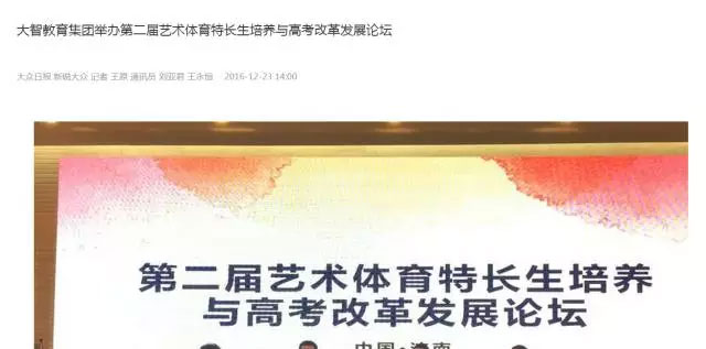 12月22日,由大智主辦的“第二屆藝術體育特長生培養與高考改革發展論壇”在山東大廈成功舉辦。數百名重點高中及藝校負責人齊聚泉城濟南,共同探討藝體生培養與高考改革發展的創新與未來。21世紀教育研究院副院長熊丙奇,中國教育科學研究院研究員儲朝暉、山東省人民政府參事、省政協常委鄧相超三位教育大家以論壇為陣地,共話高考改革走向,暢談藝體生培養創新。幾位專家的觀點被各大媒體爭相報道、引用,贊譽之聲從四面八方不斷傳來。