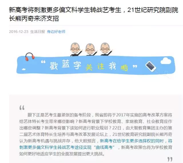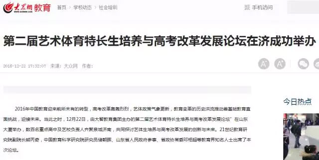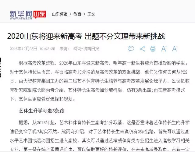 與此同時,《濟南日報》A10版以“新高考模式下,藝體生何去何從”為標題,力挺論壇專家的觀點。
