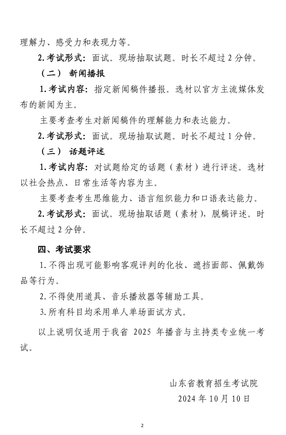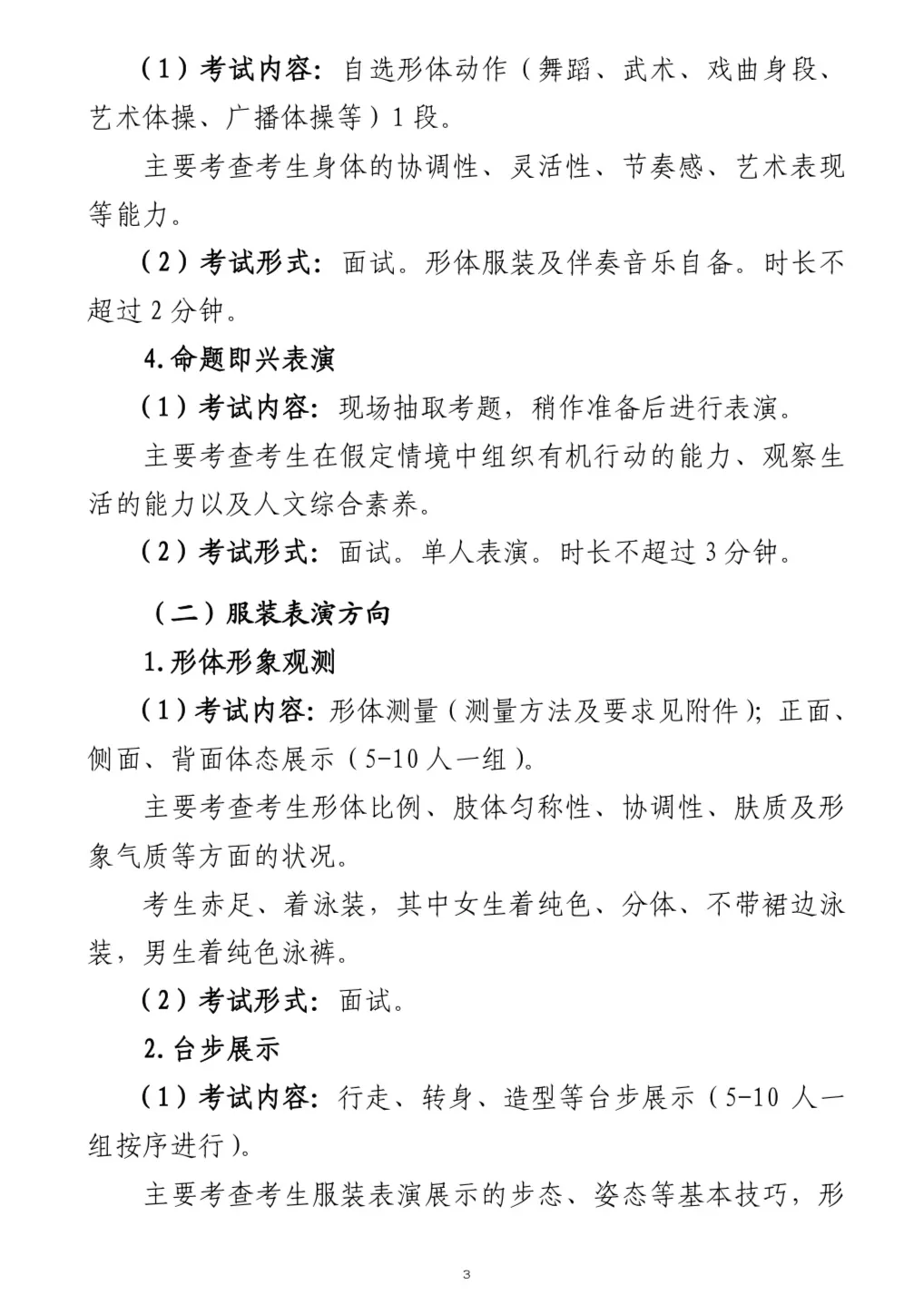 (四)舞蹈類、播音與主持類、表(導)演類(戲劇影視表演、服裝表演方向)專業采取現場面試形式。
