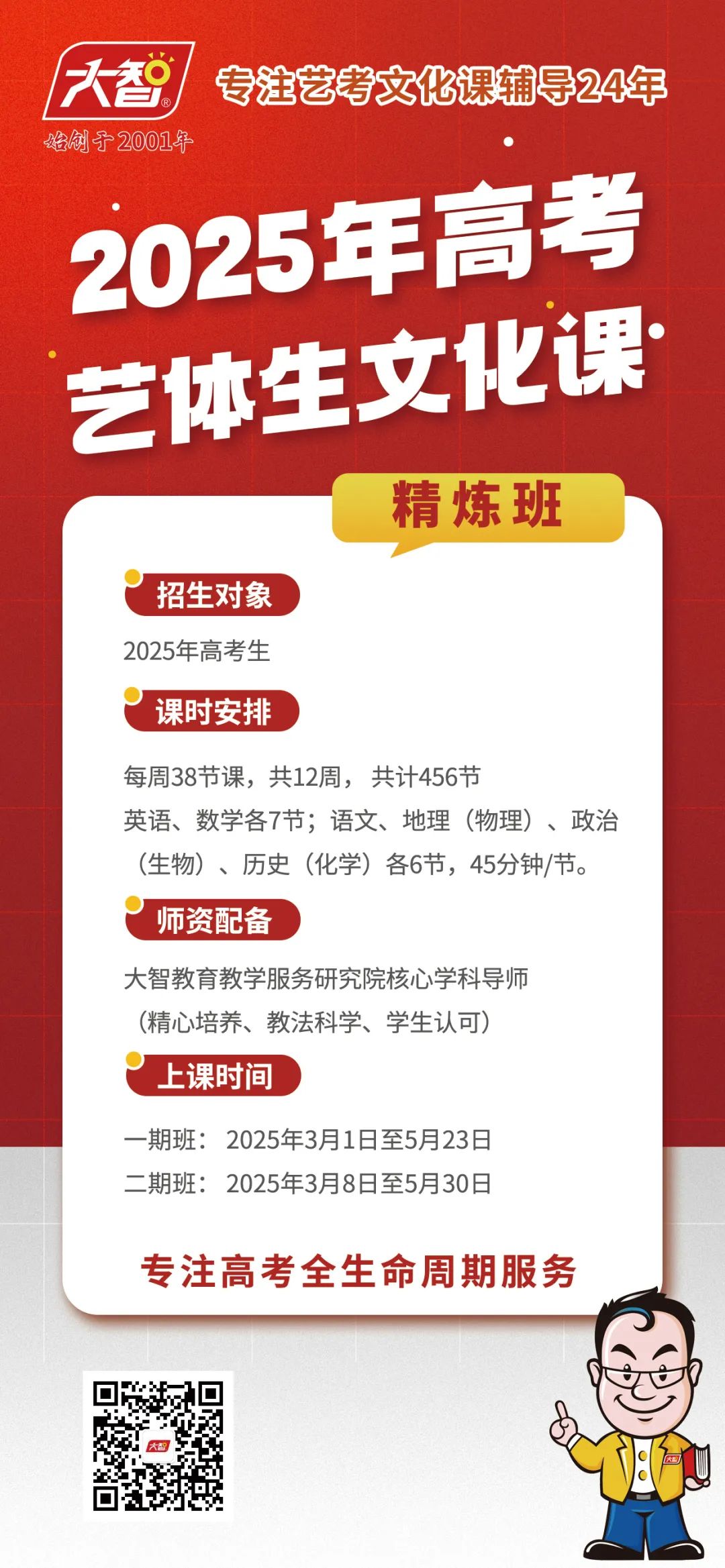 每一顆年輕的心都在為夢(mèng)想蓄力,大智攜手24載深耕細(xì)作的智慧結(jié)晶,誠(chéng)邀每一位懷揣藝術(shù)與體育夢(mèng)想的你,共同開啟一場(chǎng)專屬于2025年高考生的文化課...