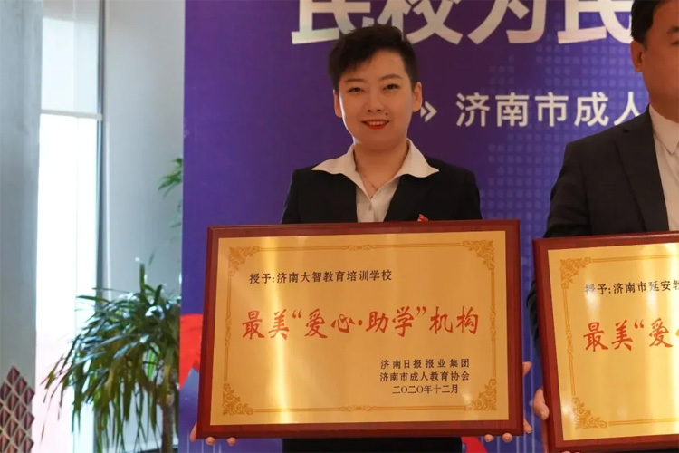 10. 2020年,大智獲評山東省放心消費示范單位,榮獲2019年度“社會教育培訓機構·規范教育辦學品牌”和最美“愛心助學”機構。