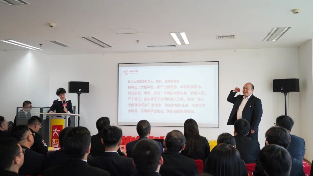 山東大智控股集團執行總裁、大智銘師教育咨詢服務(山東)有限公司董事長兼總經理張朋進行就職宣誓,并做出鄭重承諾。