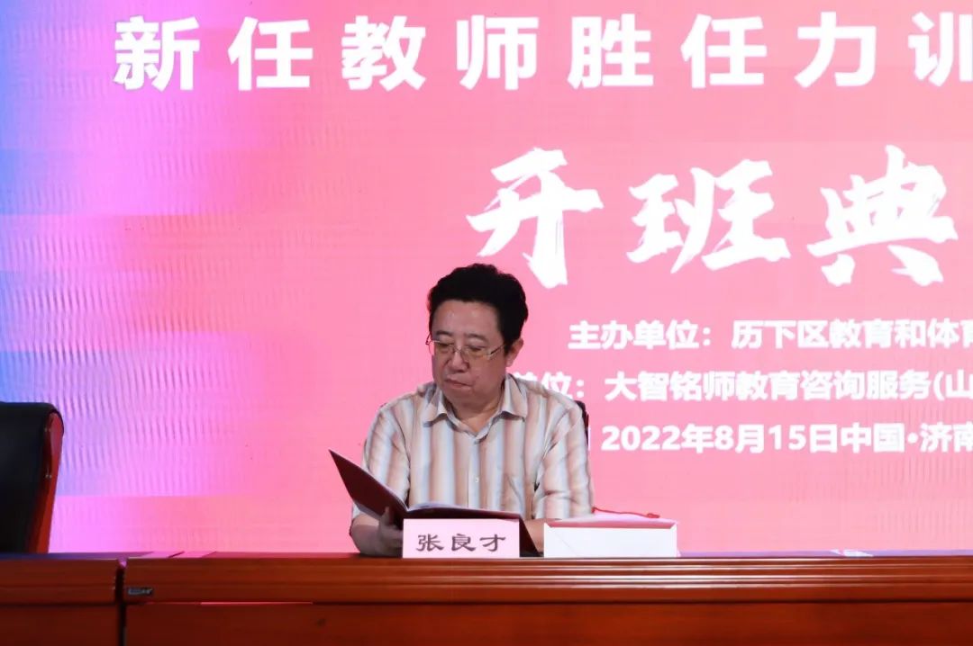 出席開班儀式的領(lǐng)導(dǎo)有:歷下區(qū)教育和體育局黨組副書記、總督學(xué)劉延?xùn)|先生,歷下區(qū)教師發(fā)展服務(wù)中心主任劉永丹女士,曲阜師范大學(xué)教授張良才先生,大智銘師負(fù)責(zé)人張朋先生,大智銘師項(xiàng)目負(fù)責(zé)人徐西路先生。