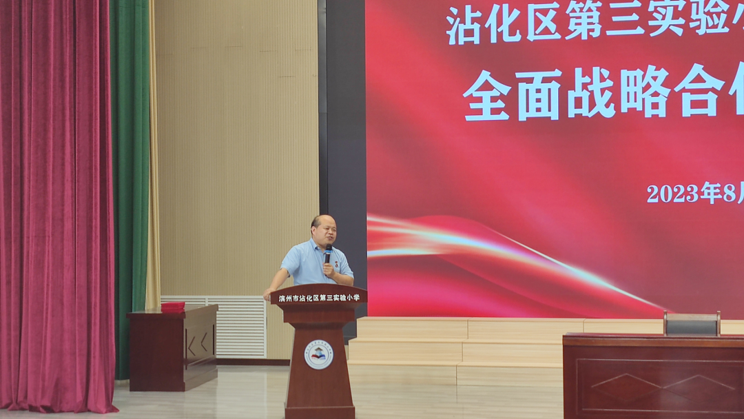大智銘師負責人張朋院長出席會議,并做了戰略合作重要講話。張院長首先對沾化區教體局、沾化區第三實驗小學教育集團的支持與信任表達了真誠的感謝。他在講話中指出:教師隊伍是國家教育強國戰略的主力軍,是落實立德樹人根本任務的核心崗位,唯有教師教育教學水平緊跟國家要求,才能培育出合格的新時代社主義事業的建設者和接班人,大智銘師定會不負信任,集頂尖專家力量助力學校教育教學水平再提升。