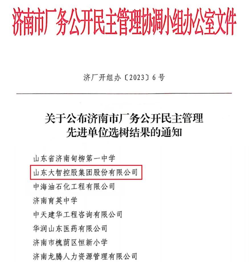 近日,濟南市廠務公開民主管理協調小組辦公室印發通知,大智控股集團獲評濟南市廠務公開民主管理先進單位。此次評選旨在深入總結濟南市各企事業單位的...