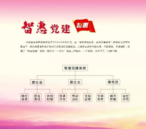 一個(gè)系統(tǒng)是“智惠黨建”系統(tǒng)。“智”即“大智”,指明了黨建的實(shí)踐主體;“惠”即“惠及、惠澤”,是黨建的目標(biāo)與成果。