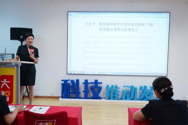 隨后,黨員們集體學習了大智控股集團創始人、董事長張維東對于大智2020-2021財年發展主題詞“科技推動發展”闡釋。