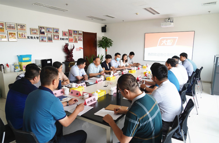 06月15日,濟南市民營企業高質量發展服務隊總領隊閆卓然、副總領隊孫凱、孫建忠、魏杰、竇家利,各服務隊領隊聯絡員以及歷下三隊隊員代表一行蒞臨大智調研。