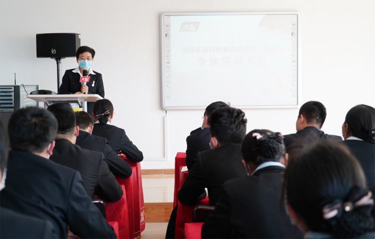 大智控股集團黨委書記王現芹現場勉勵大家:1.堅定信念,走好大智之路;2.立足崗位,創造崗位價值;3.對標榜樣,展現黨員本色;4.發揮作用,加速二次創業。