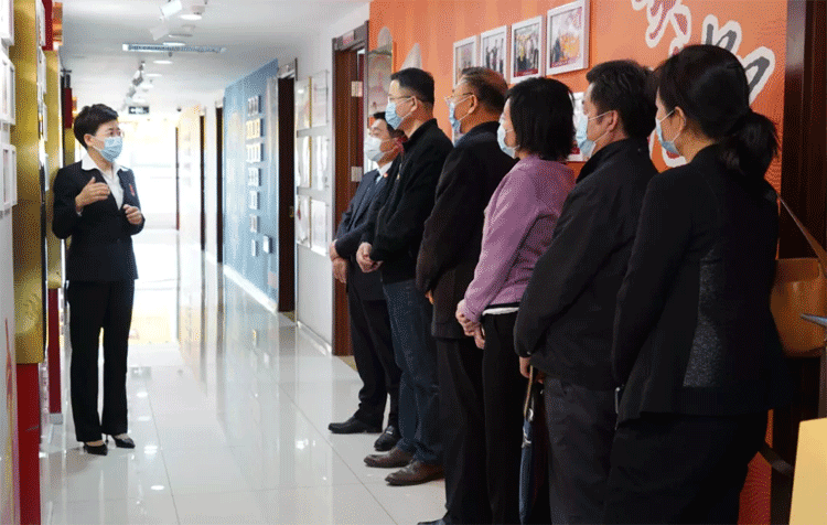 王現芹帶領大家參觀了大智黨群陣地,詳細介紹了大智“智惠黨建一三九”工作模式以及黨建引領下的大智 “一帶一促”群團建設理念和“智惠+”群團建設模式。