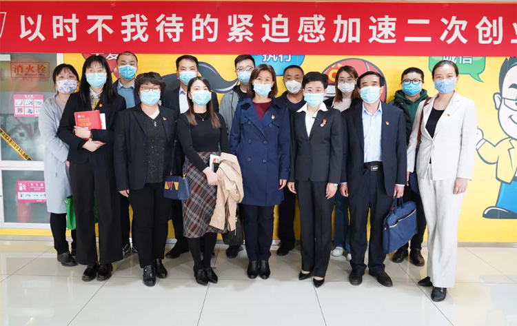 04月14日,濟南市民營企業高質量發展服務隊歷城三隊黨支部書記、隊長李寧,副書記張偉山帶領各企業代表到大智參訪交流黨建工作。