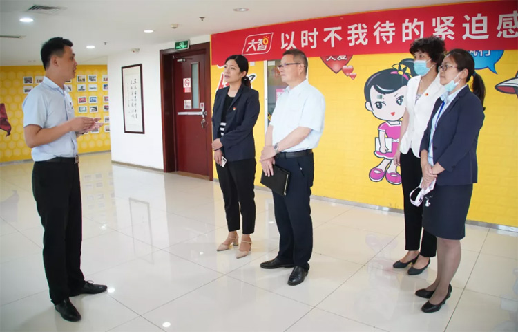 07月26日,淄博市馬尚街道組織部部長黃文娟、馬尚街道團委書記趙淦一行到大智淄博區域調研黨團建設工作,大智控股集團黨委書記王現芹、大智淄博區...