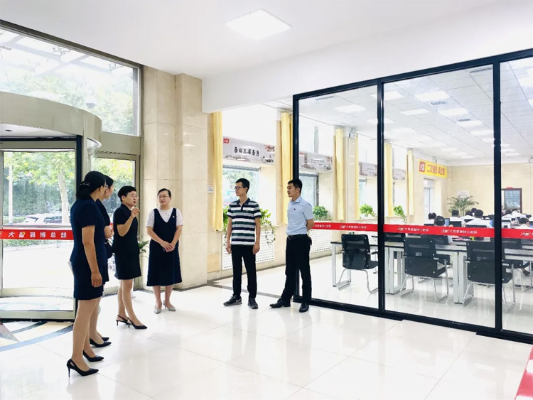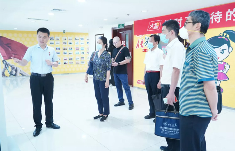 08月13日,濟南市千佛山街道辦事處黨建辦公室副主任趙孔希帶領轄區企業海大醫院的代表走進大智。大智控股集團黨委書記王現芹帶領大家參觀了大智黨...