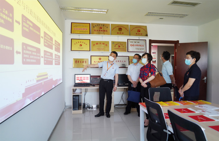 06月03日,山東省委組織部組織二處四級調研員朱曉峰、濟南市總工會副主席劉祖亭及省調研組、濟南市總工會的相關同志蒞臨大智調研企業民主管理情況。大智控股集團黨委書記王現芹、工會主席常廣成熱情接待。