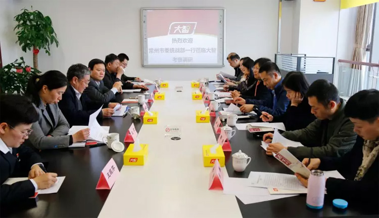 03月29日,江蘇省常州市委統戰部副部長、市社會主義學院院長顧琤一行在濟南市委統戰部巡視員齊振虎,歷下區委常委、統戰部部長杜寶現陪同下來到大智控股集團總部調研考察“新智聚濟·黨旗紅”工作品牌創建。