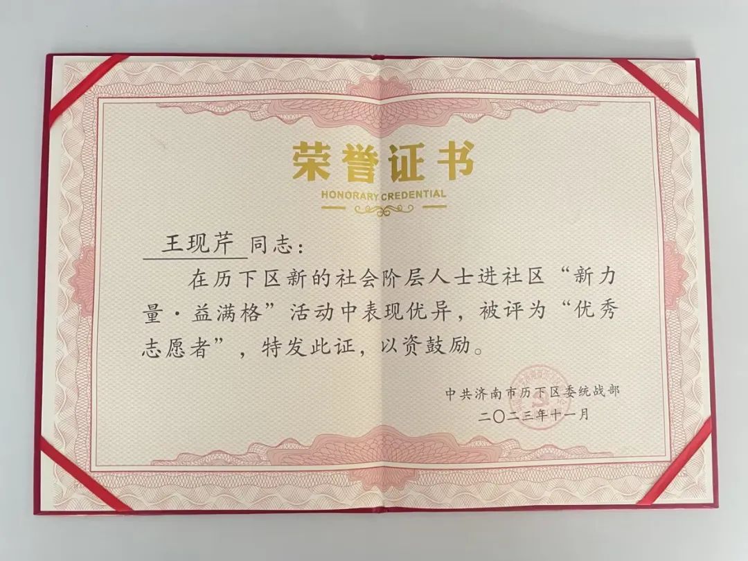 大智王現芹在“新力量?益滿格”活動中榮獲“優秀志愿者”稱號